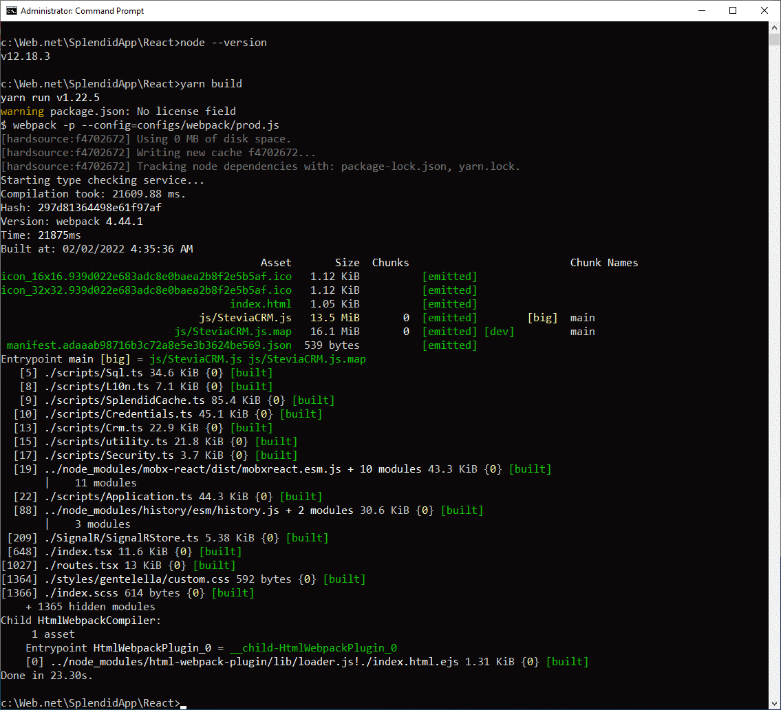 The result will be the file React\dist\js\SteviaCRM.js